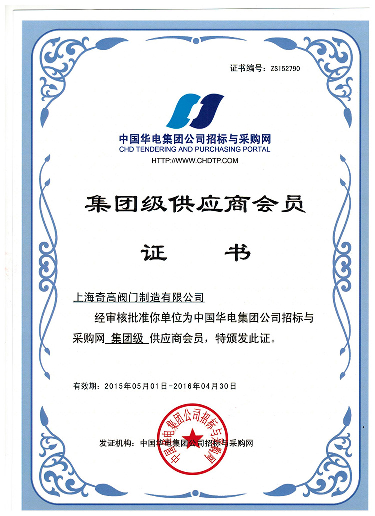 2019-12-18 關(guān)注次數(shù):2015年5月1日,上海奇高閥門制造有限公司(http://lastresabuelas.com)經(jīng)過中國華電集團(tuán)公司招標(biāo)與采購網(wǎng)的嚴(yán)謹(jǐn)?shù)膶徍?,以過硬的資質(zhì)力量獲得了中國華電集團(tuán)公司招標(biāo)與采購網(wǎng)的集團(tuán)級供應(yīng)商會員證書。特此祝賀。經(jīng)過中國華電集團(tuán)公司招標(biāo)與采購網(wǎng)的嚴(yán)謹(jǐn)?shù)膶徍?,以過硬的資質(zhì)力量獲得了中國華電集團(tuán)公司招標(biāo)與采購網(wǎng)的集團(tuán)級供應(yīng)商會員證書。特此祝賀。經(jīng)過中國華電集團(tuán)公司招標(biāo)與采購網(wǎng)的嚴(yán)謹(jǐn)?shù)膶徍耍赃^硬的資質(zhì)力量獲得了中國華電集團(tuán)公司招標(biāo)與采購網(wǎng)的集團(tuán)級供應(yīng)商會員證書。特此祝賀。
