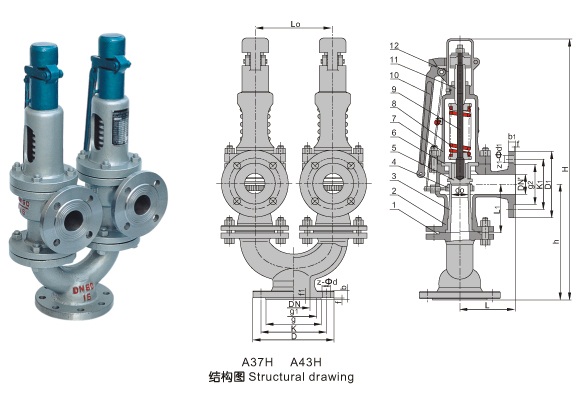 A38Y、A43H、A37H型雙聯(lián)彈簧式安全閥除三通(材料為WCB)外,其余零件的材料均和A47H、A48Y型彈簧式安全閥相同。