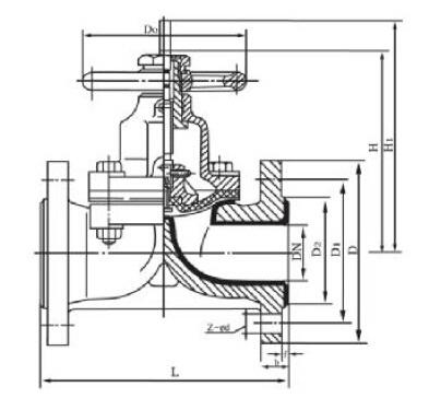 襯氟隔膜閥基本系列為全襯里G41F46、EG41F46、型堰式和G45F46型直流式。復合隔膜閥將閥體下部內(nèi)腔與閥蓋內(nèi)腔隔開,并與之形成直流通道,使隔膜上部的閥桿、閥瓣等內(nèi)件與介質(zhì)完全隔離,省去填料密封結(jié)構(gòu),介質(zhì)的內(nèi)漏和外漏可同時避免。表面均勻包覆一層FEP。閥體通道內(nèi)表面光滑,流體阻力小,CV值高,流通能力強,扭矩適中,采用四級密封結(jié)構(gòu)并在密封面外配以耐溫抗老化的SI橡膠的彈性襯墊閥座,完全達到介質(zhì)的零泄漏。