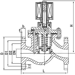 本閥是有副閥和主閥兩大部件構(gòu)成的先導(dǎo)式二次開闊的電磁閥。是靠副閥的啟閉來控制主閥的通斷。根據(jù)斷電時所處開關(guān)狀態(tài)的不同,可分為常閉電磁閥和常開電磁閥。常閉電磁閥,在段點(diǎn)常位時,副閥口封閉,主閥呈斷路,當(dāng)電訊號進(jìn)入導(dǎo)閥線圈時,活動鐵芯受電磁力作用吸上打開副閥口,主閥閥杯內(nèi)壓力導(dǎo)速消失,介質(zhì)壓力將主閥閥杯托上,開啟主閥,工作介質(zhì)便可流通。但當(dāng)電訊號消失時,活動鐵芯復(fù)位,封閉住副閥口,工作介質(zhì)自平衡孔進(jìn)入閥內(nèi),當(dāng)壓力趨于平衡時,靠主閥彈簧,閥杯自重及介質(zhì)壓力使閥杯下移,嚴(yán)密封住主閥口,閥有呈封閉狀態(tài)。常開電磁閥,在斷電常位時,有彈簧作用,副閥口打開,主閥流通。當(dāng)電訊號進(jìn)入副閥線圈時,活動鐵芯受電磁作應(yīng)吸下,當(dāng)壓力趨于平衡時,靠主閥彈簧、閥杯自重及介質(zhì)壓力使閥杯下移,嚴(yán)密封住閥口,閥門呈關(guān)閉狀態(tài)。當(dāng)主閥斷電時,電磁力消失,副閥找開,主閥杯內(nèi)壓力迅速消失,介質(zhì)壓力將主閥閥杯托上,開啟主閥口,介質(zhì)流通,閥呈開啟狀態(tài)。