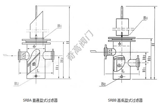SRBB高低籃式過(guò)濾器主要外形尺寸