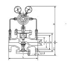 YK43X氣體減壓閥屬于先導(dǎo)活塞式減壓閥.由主閥和導(dǎo)閥兩部分組成.主閥主要由閥座、主閥盤、活塞、缸套、彈簧等零件組成。導(dǎo)閥主要由閥座、閥瓣、膜片、彈簧、調(diào)節(jié)彈簧等零件組成。通過調(diào)節(jié)調(diào)節(jié)彈簧壓力設(shè)定出口壓力,利用膜片傳感出口壓力變化,通過導(dǎo)閥啟閉驅(qū)動活塞調(diào)節(jié)主閥節(jié)流部位過流面積的大小,實現(xiàn)減壓穩(wěn)壓功能。