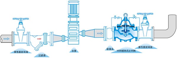 300X緩閉止回閥由主閥、單向閥、針閥、球閥、微形過濾器和壓力表組成水力控制接管系統(tǒng)。利用水力自動(dòng)操作,可使主閥的開啟或關(guān)閉速度。防止水鍾水擊的產(chǎn)生,以達(dá)到緩閉消聲的效果。