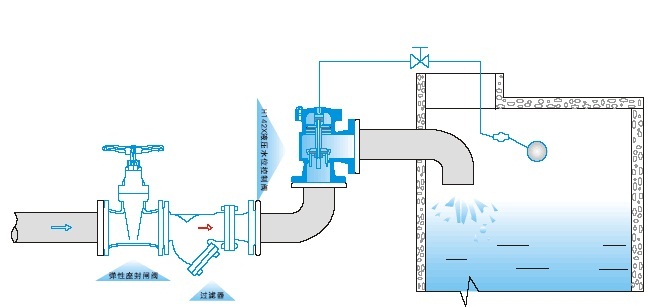 如此往復(fù)自動(dòng)控制液面在設(shè)定高度,實(shí)現(xiàn)自動(dòng)供水功能。該產(chǎn)品適用于工礦企業(yè)、民用建筑中各種水箱(池)、水塔的自動(dòng)供水系統(tǒng)。并可用作常壓鍋爐循環(huán)供水控制閥。當(dāng)水池或水塔內(nèi)水位下降,浮球閥開(kāi)啟排水時(shí),進(jìn)水管內(nèi)有壓水將閥內(nèi)活塞托起,密封面打開(kāi),閥門即開(kāi)啟供水,當(dāng)水位上升到控制閥時(shí),浮球閥關(guān)閉,活塞下移將密封面封閉,閥門即停止供水。