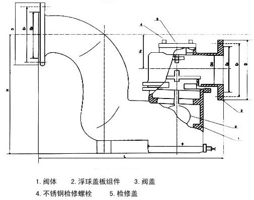 F43X-1.0T防逆水封閥主要由帶存水彎的閥體及浮球蓋板組件等組成,帶浮球的蓋板蓋在閥體的密封閥座上,將閥腔分成內(nèi)外兩部分,內(nèi)腔為清水部分,外腔通排水管道,當內(nèi)腔充滿清水時.因位于內(nèi)腔的浮球作用,蓋板壓力降低,易于開啟通流。溢流停止后,蓋板可白行復位.蓋嚴閥座,從而可嚴格阻斷臭氣及污水倒灌。